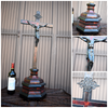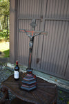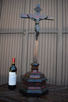 antique 19thc Large 33" height crucifixinlay decor and silver corpus and inri plaquestill in good condition with slight...
