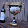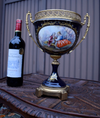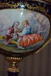 vintage acf sevres marked porcelain vase bowldark cobalt blue decor with victorian romantic scenemarked at back32 cm height...