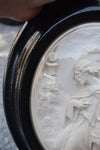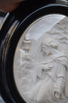 Antique 1880s meerschaum carved bas relief with christin a wood framebehind convex glass globevery beautiful pieceslight wear traces33...