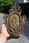 antique bronze holy water fontvery beautiful piecewith madonna and jesus and angels28 x 17 cm first half XXthc...