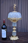 vintage 70s table lampcrystal glass and metal gold gild partsputti cherub brass figurine on topworks with e14 bulb...