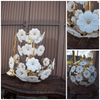 italian 70s murano white glass flowers chandeliermetal gold gilt ( some wear finish due to age but is...