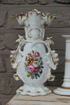 Antique pair vieux paris porcelain Vases set with matching candle holders hand paint floral decor 19th century Very...