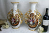PAIR antique 19th c Vasestop pieces in vieux paris porcelainwith romantic couple scenes, one with a monkey which...