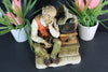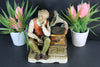 italian 1970 porcelain statue man listening to gramophone player plays real music as a music box in inside...