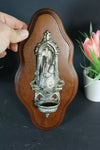 Gorgeous antique french holy water fonton a wood plaquewith metal figurine madonna montaigu 25 x 13 cm with...