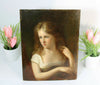 Gorgeous portrait painting of a girlafter fernand khnopff painting 1930/1950 periodoil cardboard plaque very nice work 31.2 x...