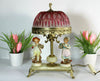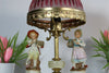 vintage french table lamp 1970sporcelain figurines onyx base glass pink shade on top very gorgeous 21 cm wide...