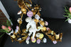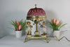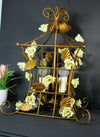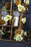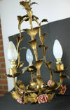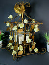 Rare to find vintage french chandelier metal gold gild caged frame with yellow porcelain flowersyou can place 4...