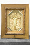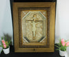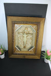 Antique french 19thc Religious wall music box crucifixin a frame when you turn key at bottom it starts...