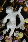 Antique French Metal & porcelain flowers Chandelierwith 3 armsin the middle in a porcelain cherub putti figurine (...