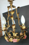 gorgeous Vintage 1970 Chandeliermetal gold gilt met porcelain rose flowers perfect for small roomsyou can place 3 bulbs...