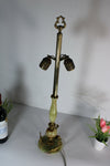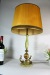 vintage 1970 french table lampwith onyx marble base brass dolphin fish figurines at basefabric shade ( has some...