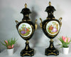 LArge pair vintage limoges cobalt blue porcelain vaseswith satyr heads romantic victorian scenes55 x 23 cm so pretty...