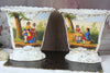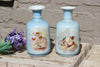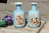 PAIR antique cute miniature vaseswith angel putti romantic decorslight pastel blue colour 14.5 cm height1 has a chip...