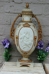 top antique german vaseporcelain Bisque very detailed with putti scenes front and backside in reliefliddedmarked but could not...