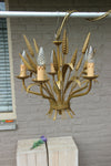 Mid century lamp from 1960sMAde for Massive lighting company Wheat sheaf gold gilt chandelier with 5 arms (...