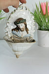 Antique porcelain / bisque french holy water fontwith a christ in relief 17.5 x 10.5 cm good condition...