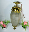 Gorgeous french antique bronze/ glass lantern chandelierwas hanging in an entrance hallwith ram heads glass shade ( a...