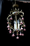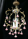 Gorgeous french vintage chandelier from 1970swith faience pink roses and porcelain 60 cm height and 31 cm wide...