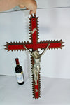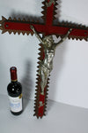 Antique Tramp art crucifix67.5 cm lenght and 42.5 cm widepiece from 1940swith metal christ on red velvet good...