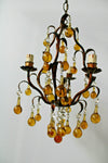 Gorgeous vintage italian small murano glass drops chandelierwith 3 armsamber coloured drops65 cm height totally till canopy, chandelier...