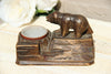 Rare black forest wood carved Music box with bear figurine and ashtraywhen you pull the handle ,the drawer...
