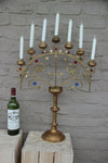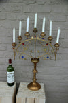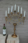 Majestical 7 arms church candelabrabrass with coloured stonesaltar piece1950s64 cm height and 48 cm wide (white candles not...