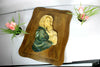 Gorgeous Religious wall plaque from france 1950swood back plate with a a relief plaster chalkware madonna with child...