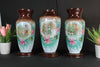 Set 3 antique opaline glass vases begin XXth centurywith animal romantic decors and enamel floral decor in relief...