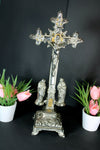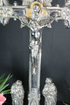 antique french spelter zinc crucifixwith 4 evangelis symbols on the basecalvary 45 x 18 cm 1930/1950