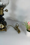 XL french vintage table lampwith porcelain faience floral decor decorated with relief flowers and ram heads , very...