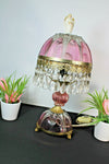 Vintage bohemian pink glass table lampwith glass drops hanging very nice lampon top an angel figurine ,is now...
