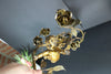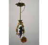 Gorgeous antique french bronze chandelier pendant lamp With a bronze putti musician angel bow around it with metal...