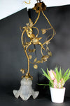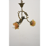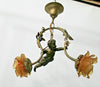 Gorgeous antique french bronze chandelier pendant lamp With a bronze putti angelporcelain flowers ( small nick ) 35...