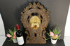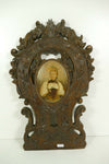 Gorgeous antique black forest wood carved frame plaque with an oil portrait painting in the middleis for wall...