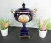 Gorgeous XL Cobalt blue porcelain centerpiece bowl liddedwith victorian scene 43 cm wide handle to handle , 24...