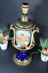 Antique french porcelain vase mounted as lampwith hand paint cherub putti and floral decorgood condition,just 1 old repair...
