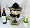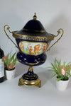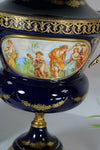 LARGE vintage cobalt blue porcelain limoges centerpieceliddedwith romantic scene 44 cm height and 33 cm wide handle to...