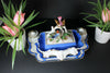 gorgeous 1970s cobalt blue porcelain boxwith victorian scenemarked base15 x 11 x8.5 cm good condition wiht minimal wear...