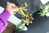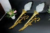 PAIR vintage louis XVI decor bronze wall lights sconceswith flame torch glass shades on top ( you can...