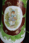 pair french antique opaline glass enamel vaseswith girls very cute set 32.5 cm height and 12.5 cm diameter1950s...