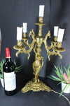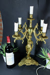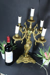 pair antique xl zamac metal candelabras boy & girl figurine and base decorated with caryatids and satyr headsome...