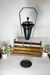 retro 1970s Chrome metal / wood magazine rack holder with ashtray typical piece from 1970sgood condition,just black astray...