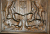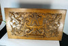 very detailed antique wood carved wall panelcoat of armswith knight / mythological dragons creatures 38.5 x 34.5 cm...