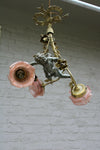 A real treasure from a parsian house antique bronze putti cherub 3 arms chandelier with floral decor pink...