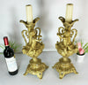pair antique french bronze candlesticks with puti cherub figurines and ram heads 43 cm height good condition (...