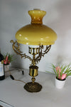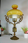 vintage french 1960s table lamp brass with birds decor and opaline glass globe on top and flute good...