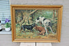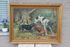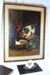 Dutch oil cardboard paintingsigned dog barking still life 65x85cm with frame circa 1960