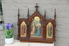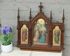 Religious top piece from francelate 1800sNEO Gothic wood frame and oil on panel tryptique painting , in the...